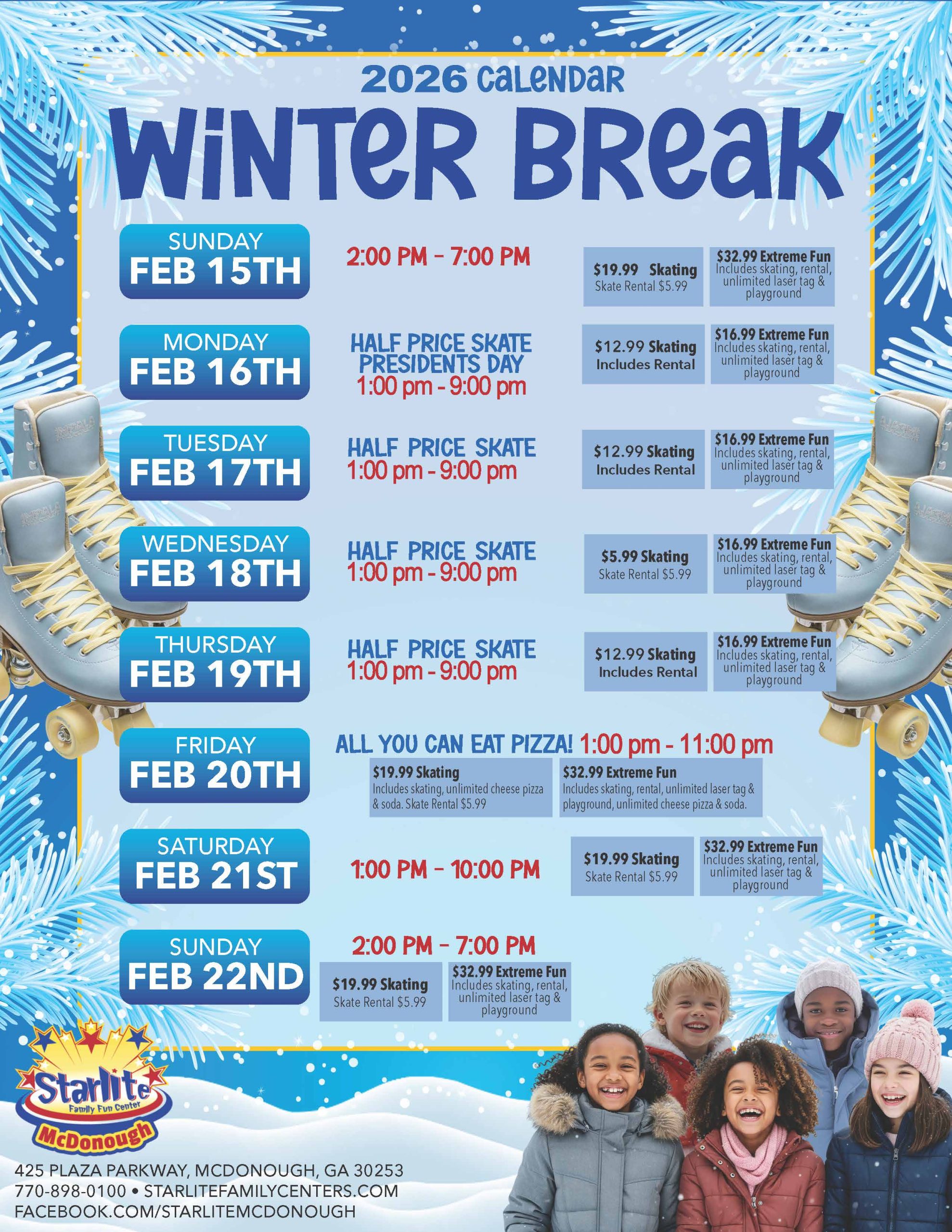 We follow the Henry County school schedule. During school weeks out we follow our School Holiday Schedule. Please note: All schedules are subject to change without notice.